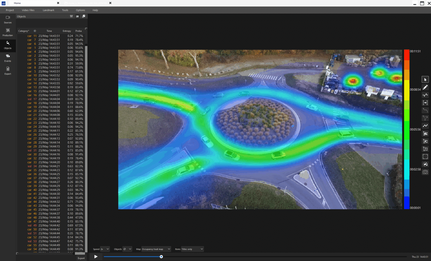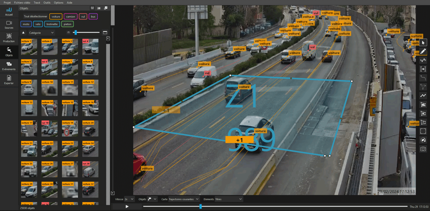 L’outil minUi, basé sur l’IA, permet d’analyser les comportements sur la voirie, dans l’optique de la mise en place d’une voie dédiée. L’analyse des rabattements sur plusieurs kilomètres, des phénomènes de remontée de files, des changements de voie, du trafic et de la vitesse sont des mesures assez complexes à produire sans cet outil. Les informations ainsi récoltées fournissent des indicateurs fiables sur la manière dont les usagers s’approprient les VR2+..