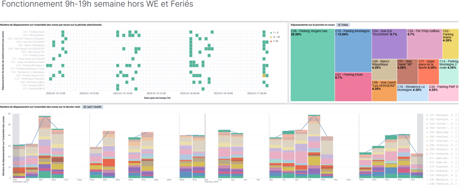 Produire des historiques et indicateurs de stationnement exploitables (occupation, rotation, infractions potentielles) dans des délais courts, afin d’alimenter l’aide à la décision et le pilotage opérationnel de la Police Municipale.